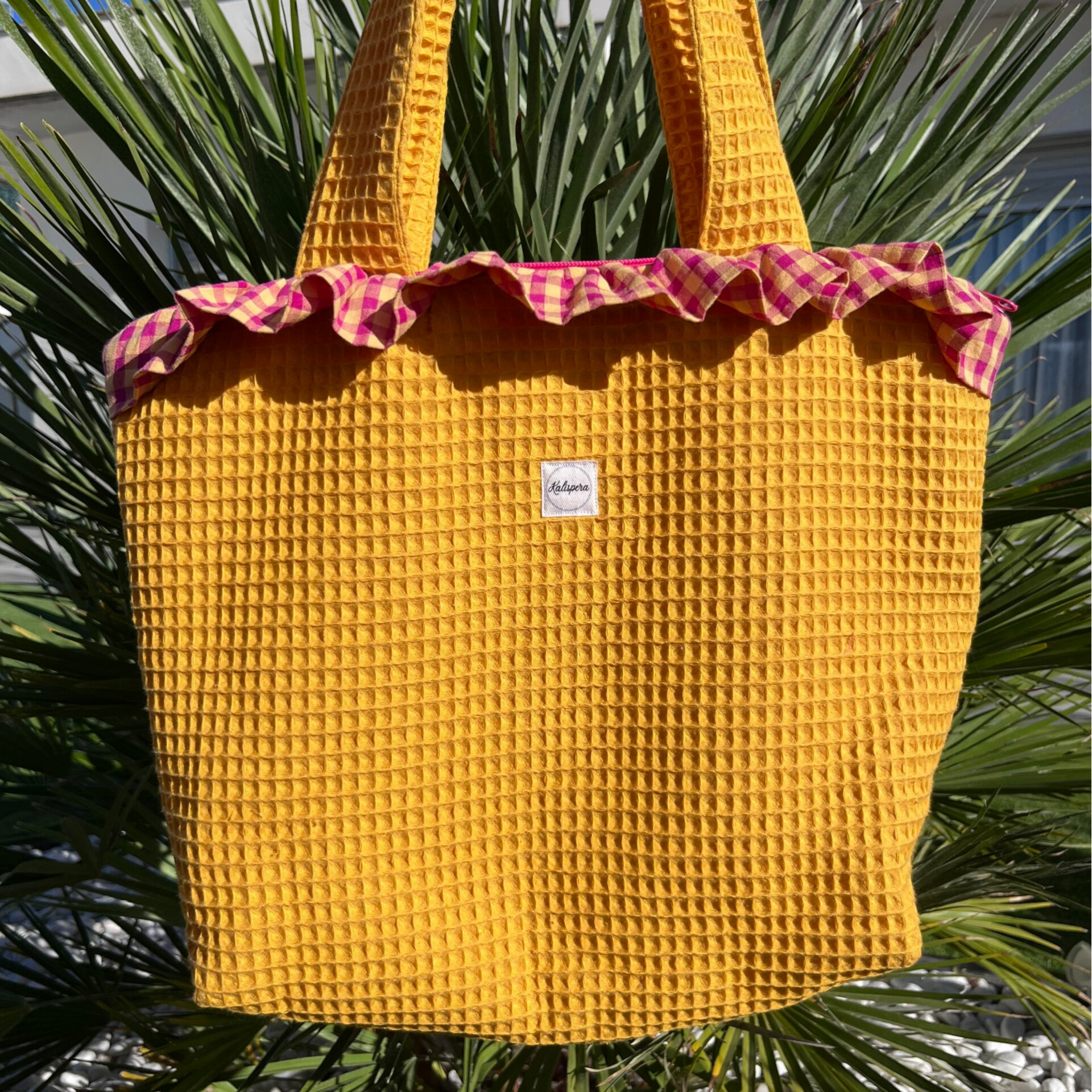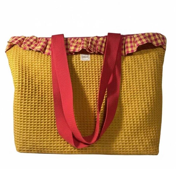 Bolso cómodo y funciona con un volante que le da un toque único. Con cremallera exterior y un bolsillo doble interior. Ideal para acompañarte en tu día a día.